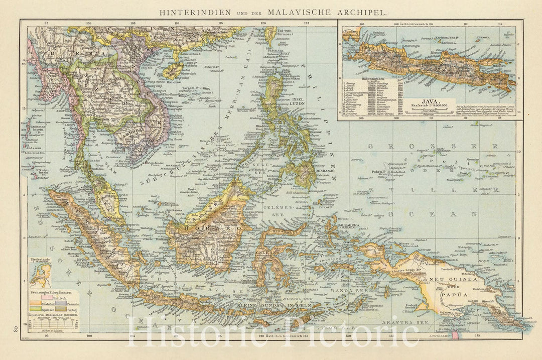 Historic Map : Indonesia, Java (Indonesia), East Indies 1881 Hinterindien, Malayische Archipel. , Vintage Wall Art