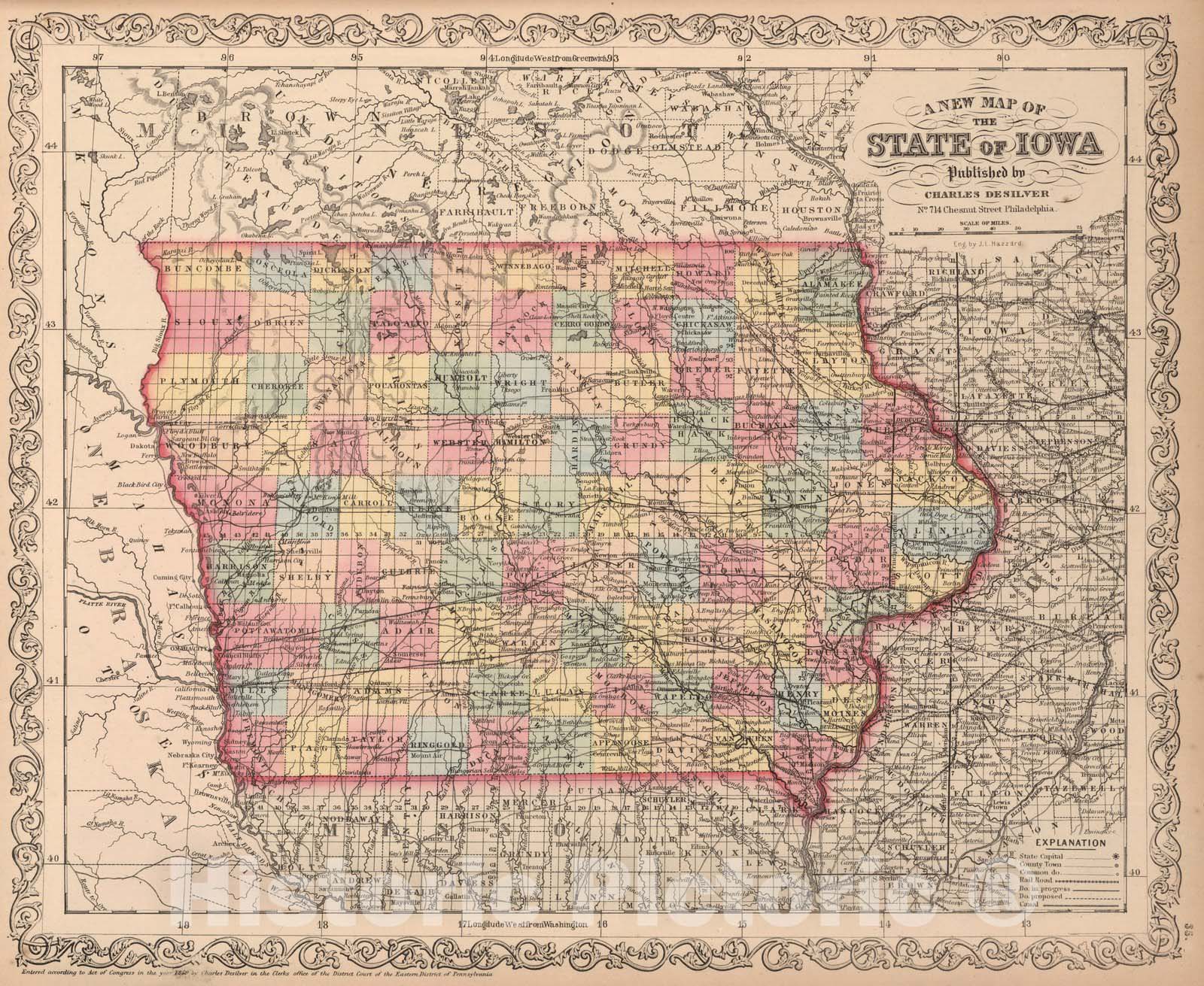 Department Of The Interior General Land Office J.A. Williamson, Commissioner. State of Iowa. 1878. Compiled from the official Records of the General Land Office and other sources by C. Roeser, Principal Draughtsman G.L.O. Photo lith & print by Julius Bien 16 & 18 Park Place N.Y. | Department Of The Interior General Land Office J.A. Williamson, Commissioner. State of Iowa. 1878. Compiled from the official Records of the General Land Office and other sources by C. Roeser, Principal Draughtsman G.L.O. Photo lith & print by Julius Bien 16 & 18 Park Place N.Y. |