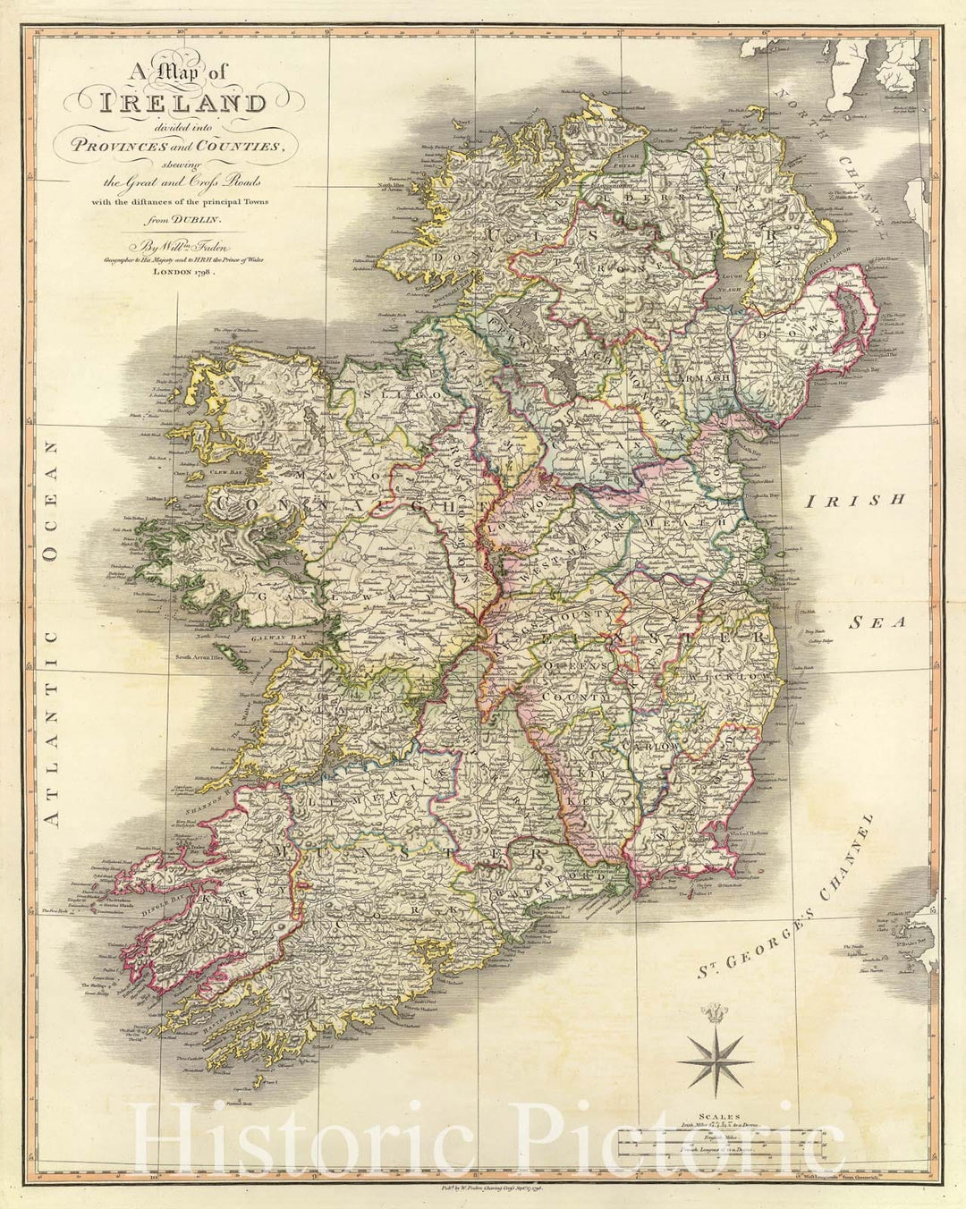 Historic Map : Ireland., 1798, Vintage Wall Art