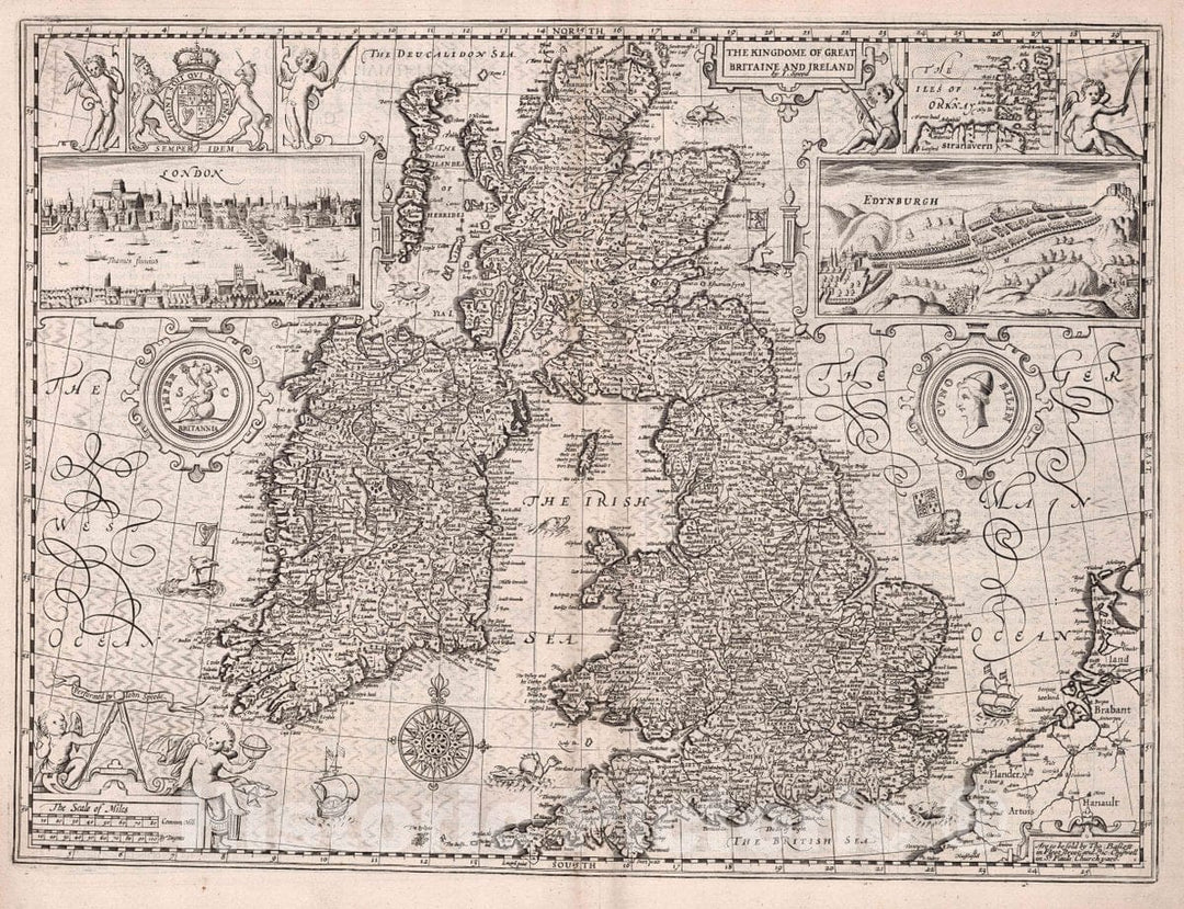 Historic Map : The Kingdome of Great Britaine and Ireland, 1676 Atlas - Vintage Wall Art
