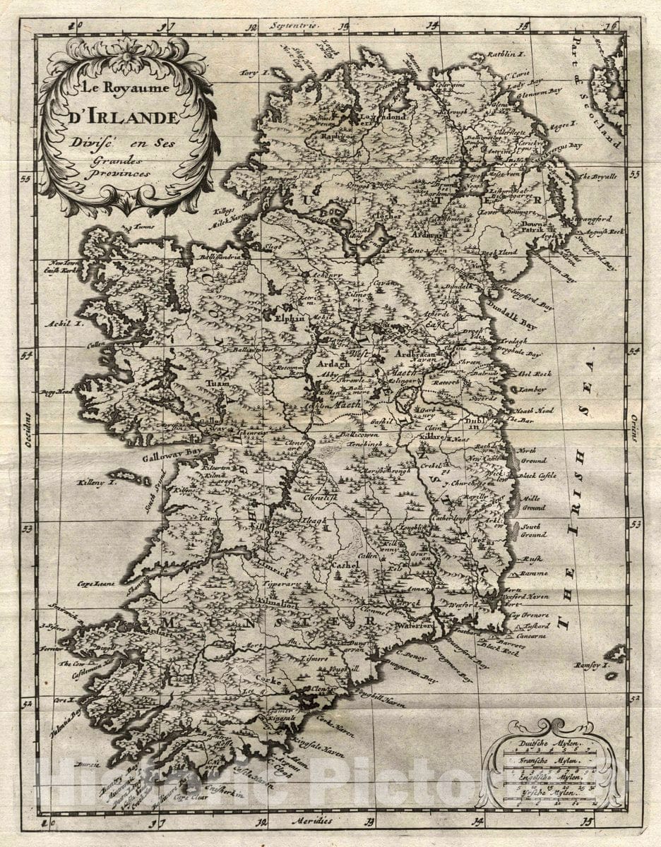 Historic Map : Ireland, Le Royaume d'Irlande, 1734 Atlas , Vintage Wall Art