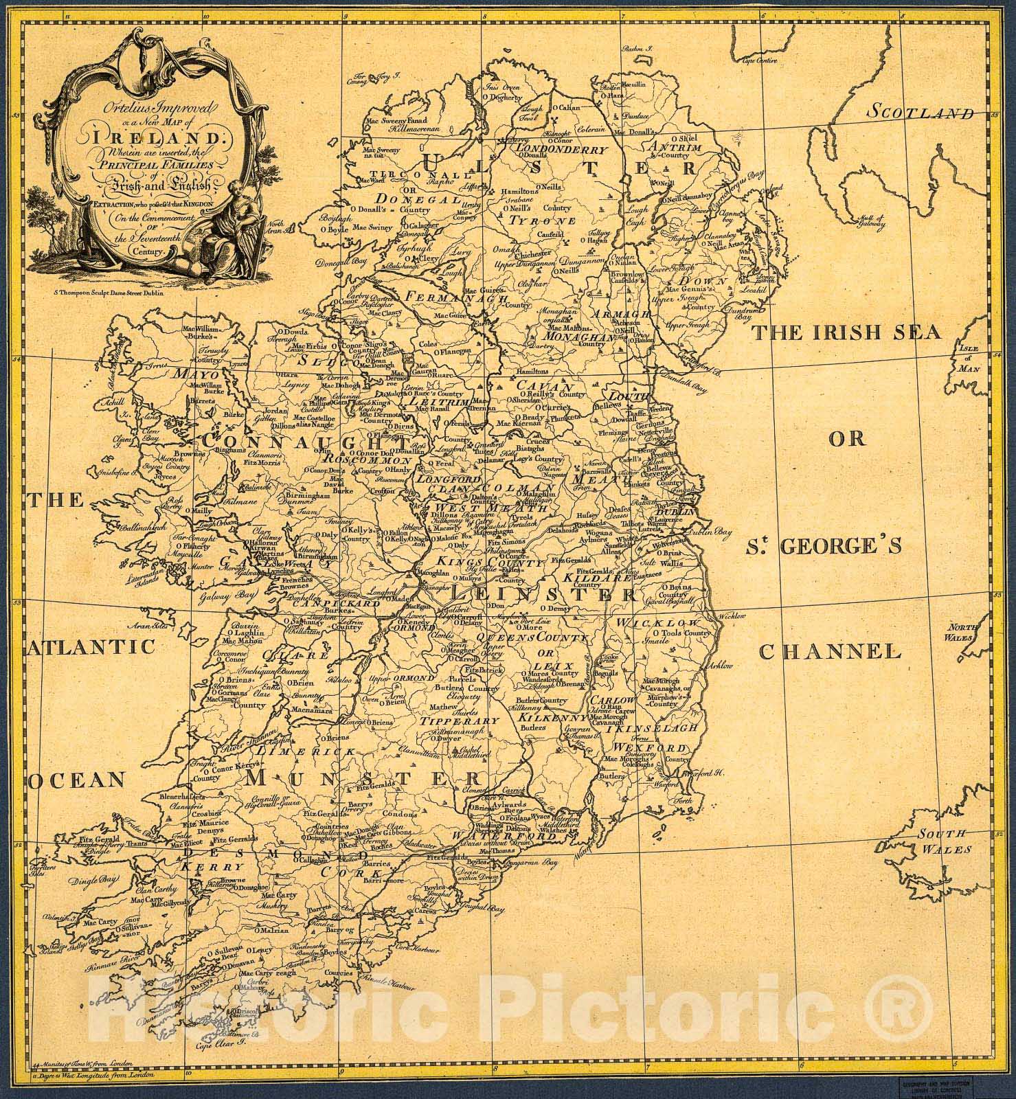 Historic 1795 Map - Ortelius Improved, or a New map of Ireland : Wherin are Inserted The Principal Families of Irish and English Extraction
