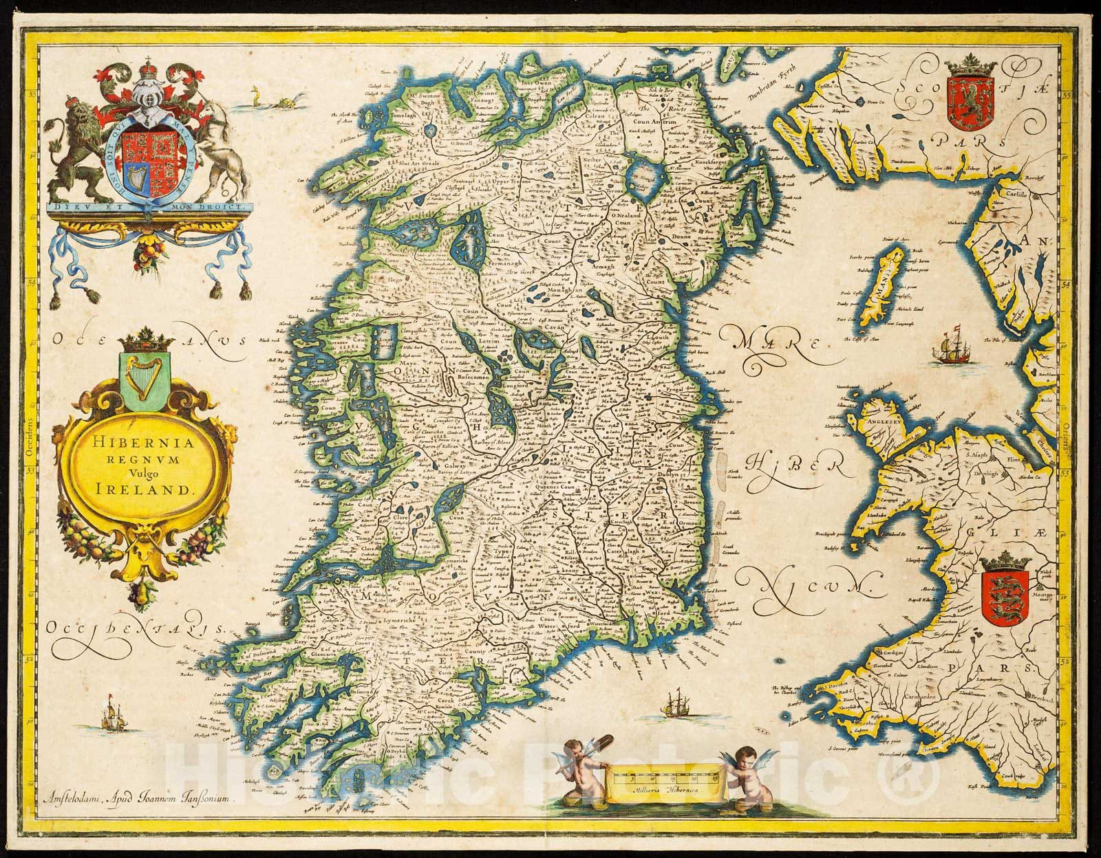 • .Historic Map : 1650 Hibernia regnvm vulgo Ireland / Apud Ioannem Ianssonium : Vintage Wall Art