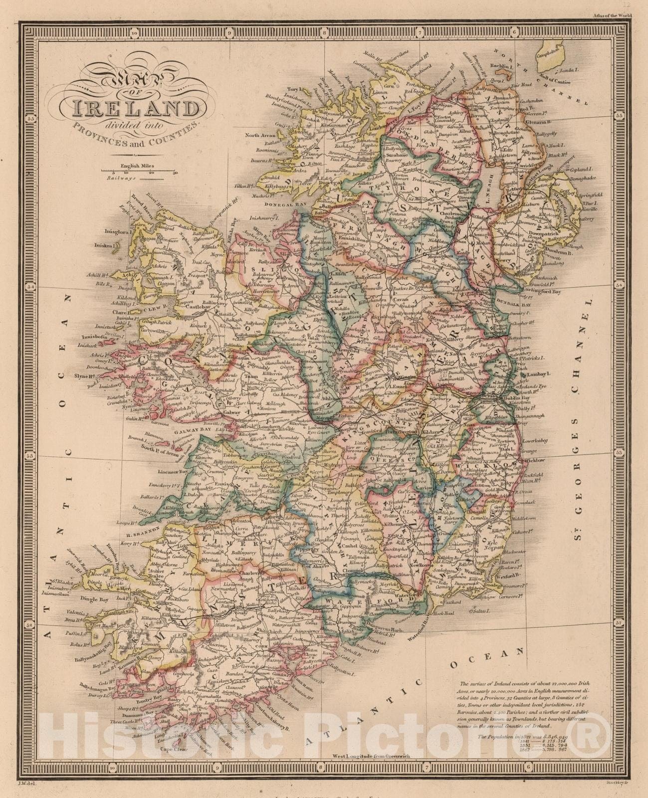 Historic Map : 1864 Map of Ireland Divided into Provinces and Counties - Vintage Wall Art