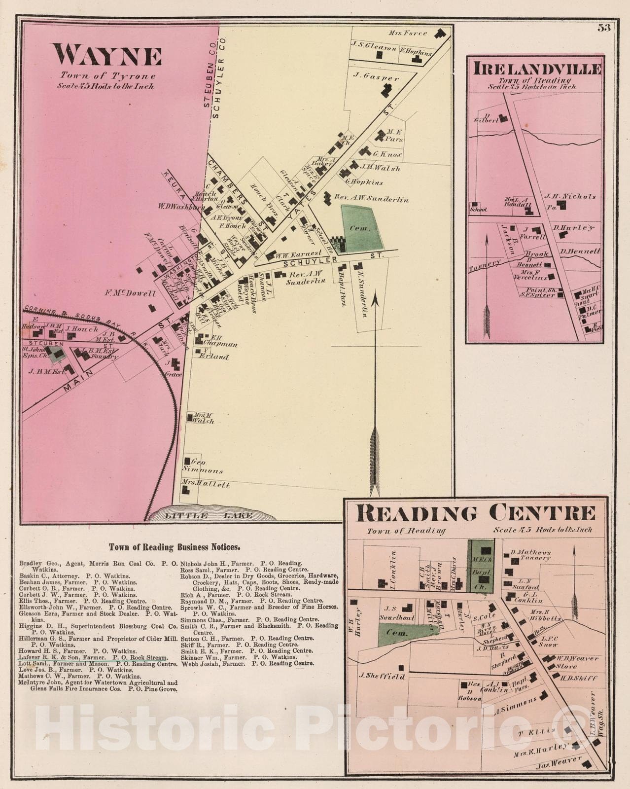 1874 Wayne, Schuyler County, New York. Irelandville. Reading Centre.
