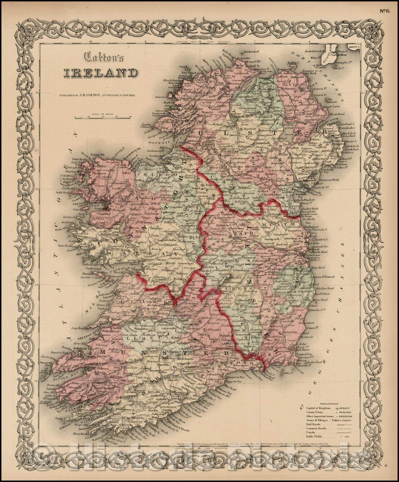• .Historic Map - Colton's Ireland, 1862, Joseph Hutchins Colton v2