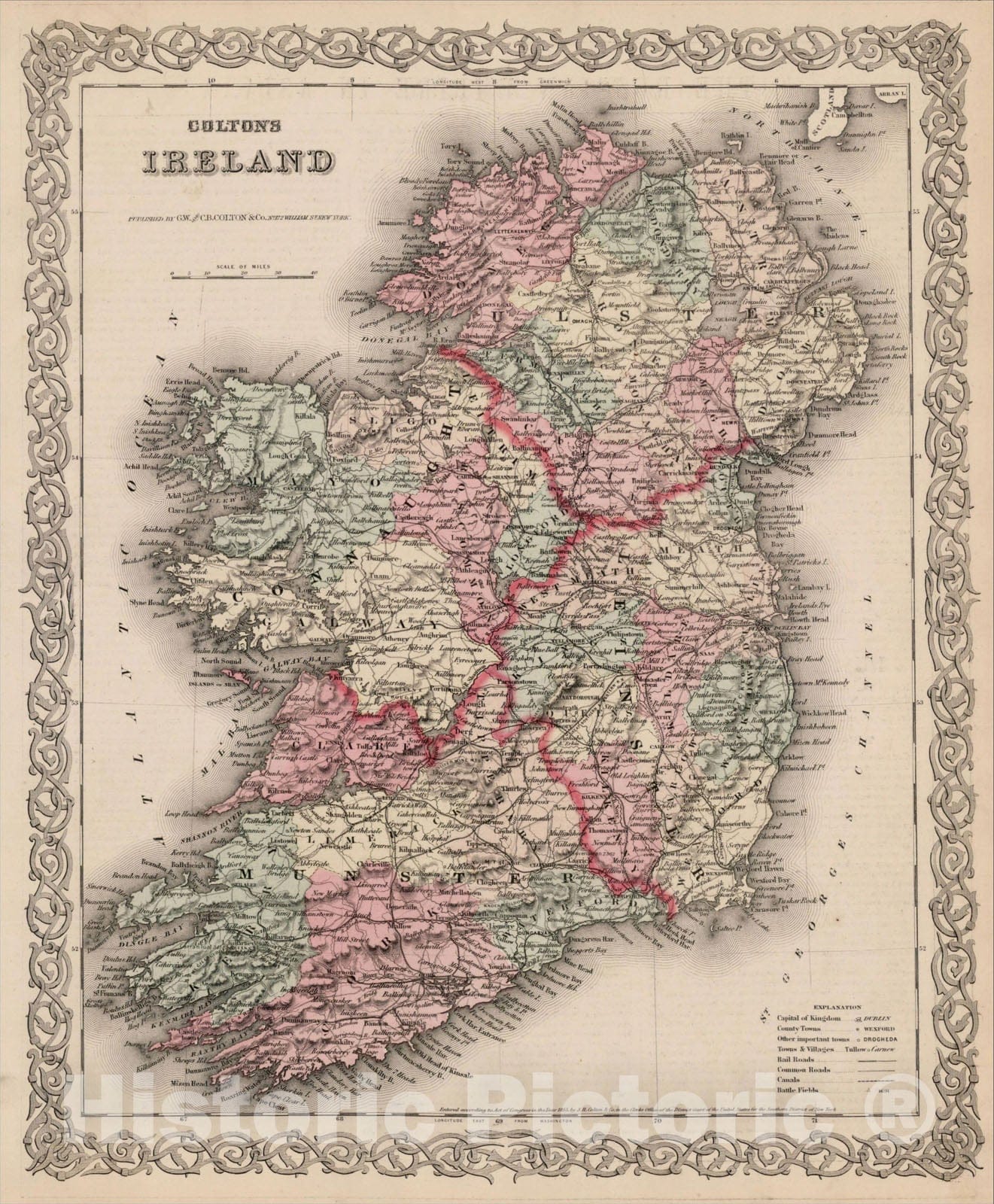 Historic Map : Colton's Ireland, 1864, Joseph Hutchins Colton, Vintage Wall Art
