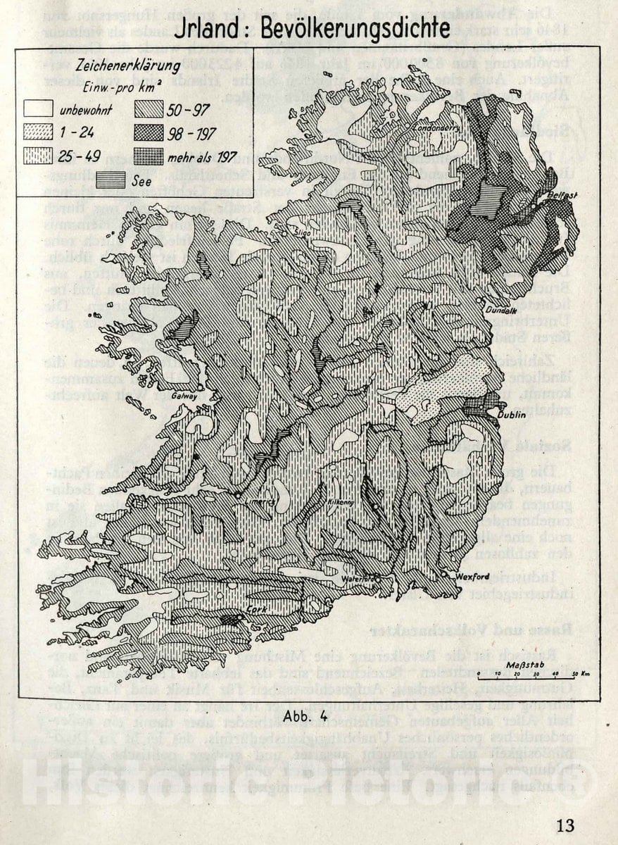 Historic Map : Fig. 4. Ireland: Population Density, 1940 Military Atlas - Vintage Wall Art
