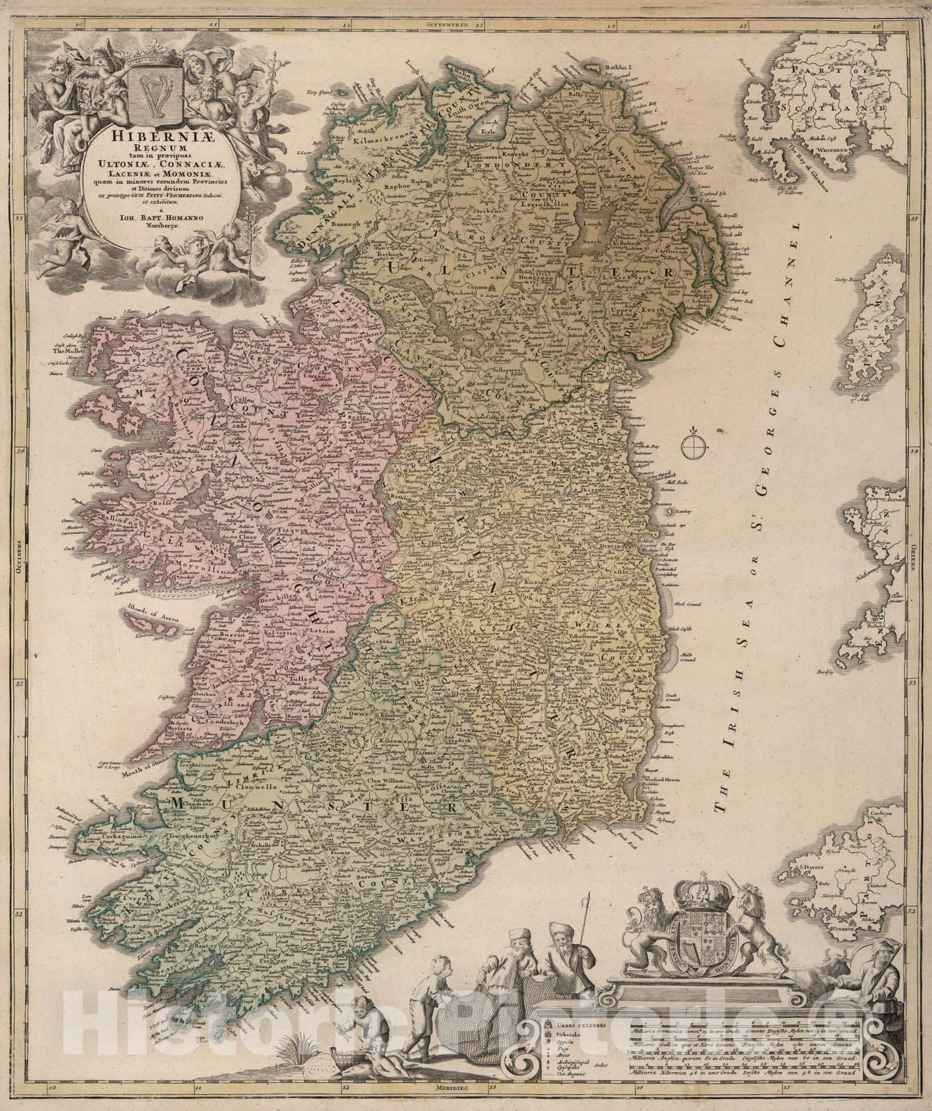 • .Historic Map : Ireland., 1788 Hiberniae Regnum tam in Praecipuas Ultoniae, Connaciae, Laceniae et Momoniae. , Vintage Wall Art