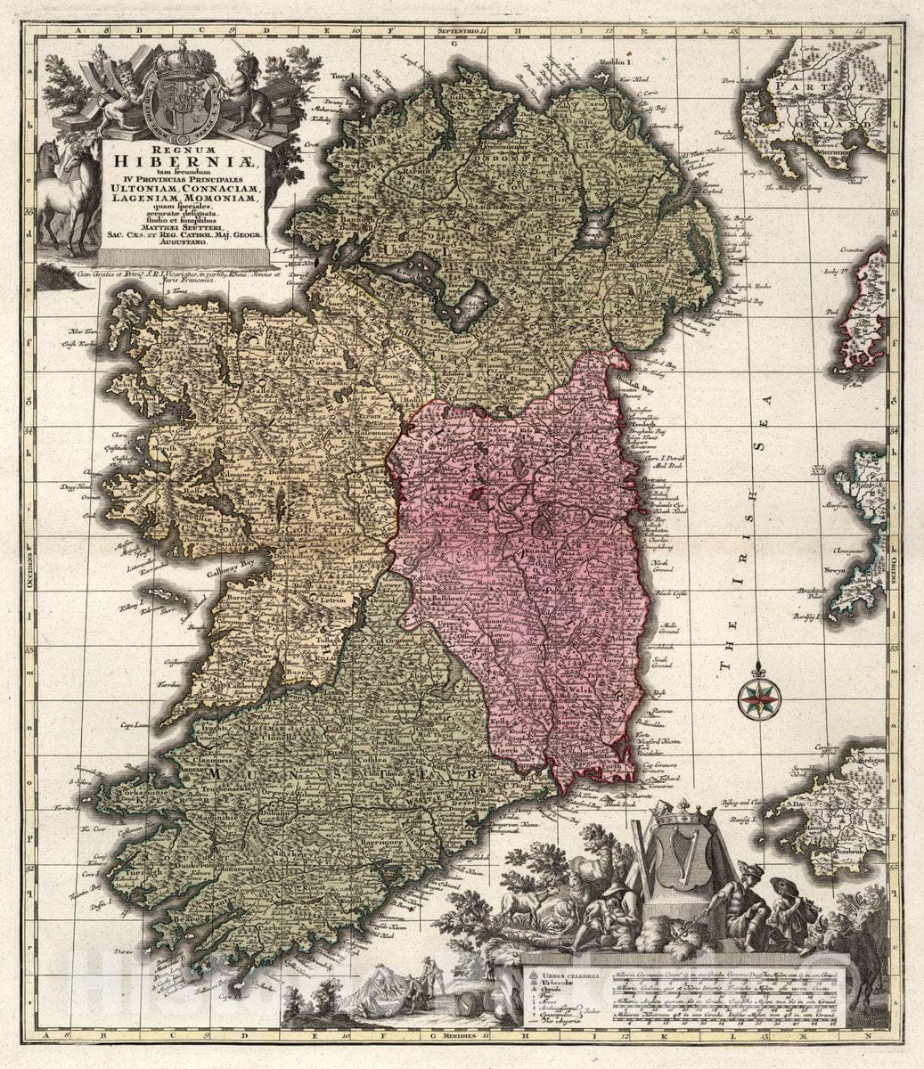 Ireland, Composite Seutter Atlas. 38. Regnum Hiberniae, 1680 Atlas , Vintage Wall Art