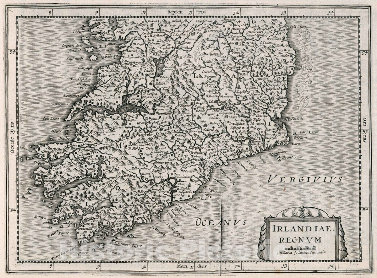 Historic Map : Ireland, Irlandiae Regnum. Atlas sive Cosmographicae Meditationes de Fabrica Mundi et fabricati Figura, 1636 Atlas , Vintage Wall Art