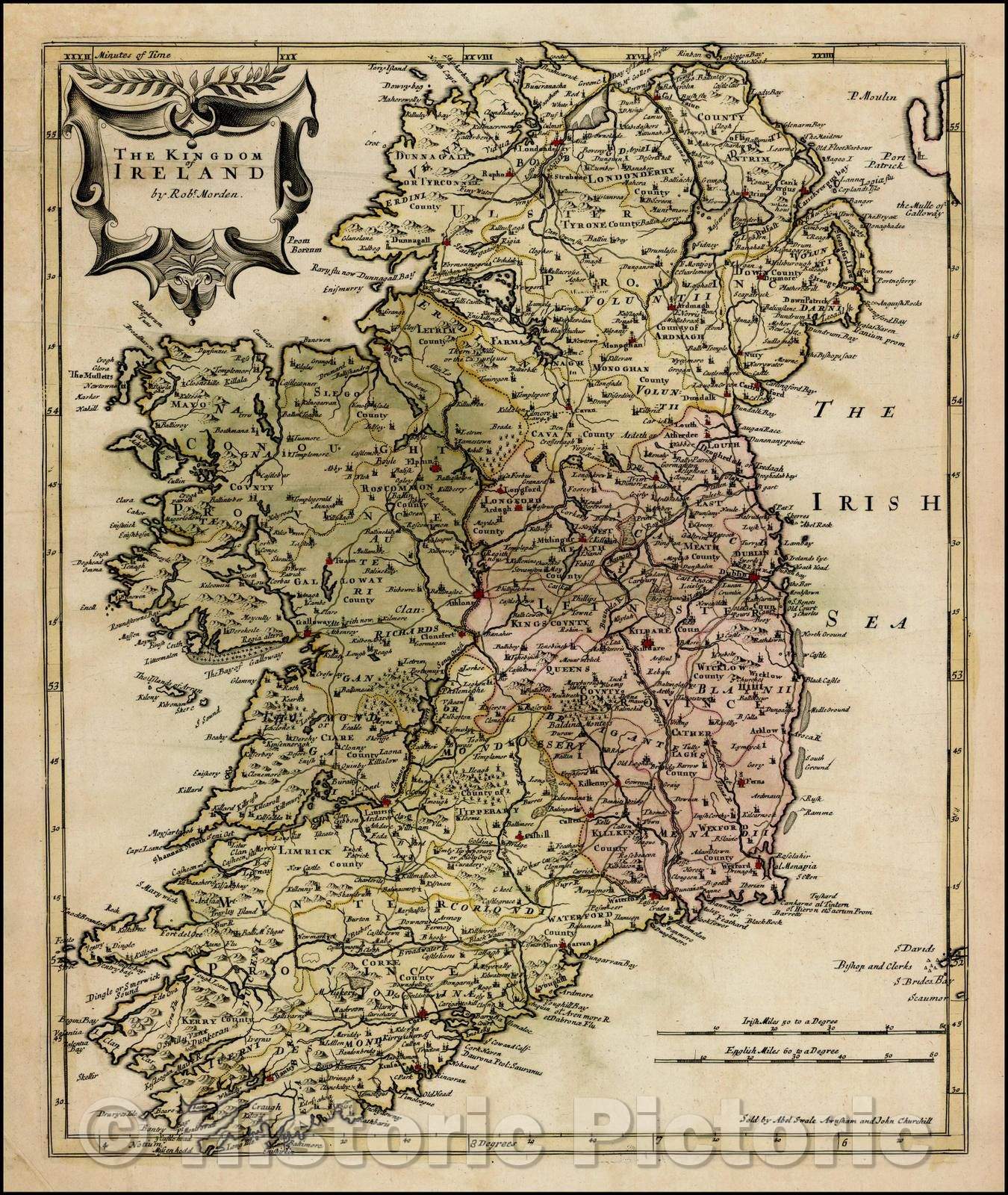 • .Historic Map - The Kingdom of Ireland, 1695, Robert Morden v2