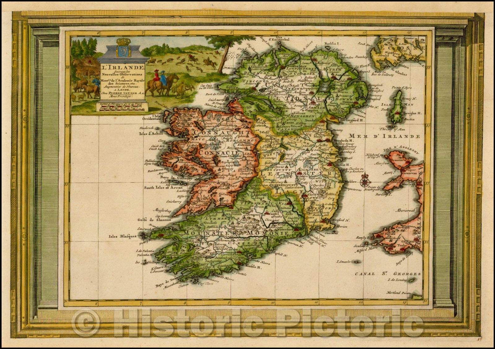 Historic Map - L'Irlande Suivant les Nouvelles Observatio/Vander Aa's map of Ireland,Theatre Du Monde, 1700, Pieter van der Aa - Vintage Wall Art