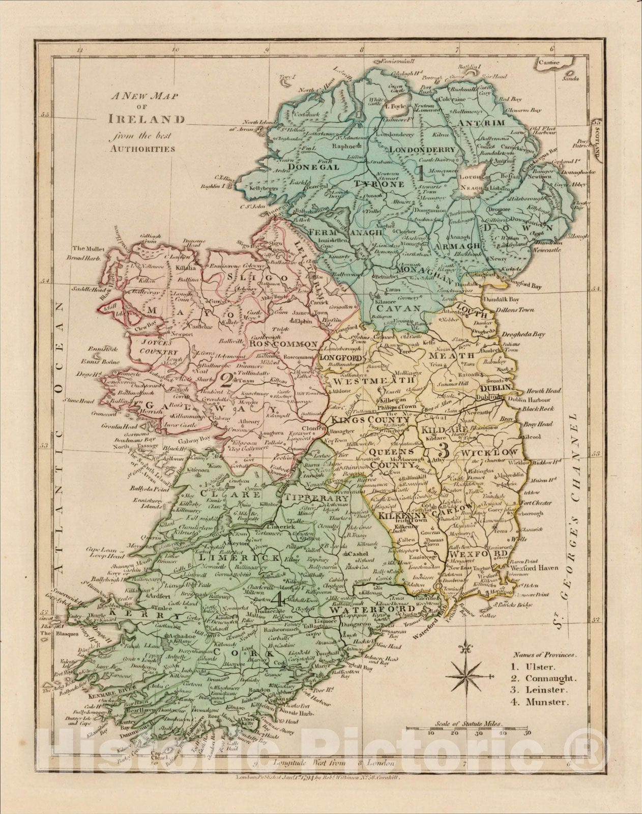 A New Map of Ireland from the best Authorities, 1794, Robert Wilkinson