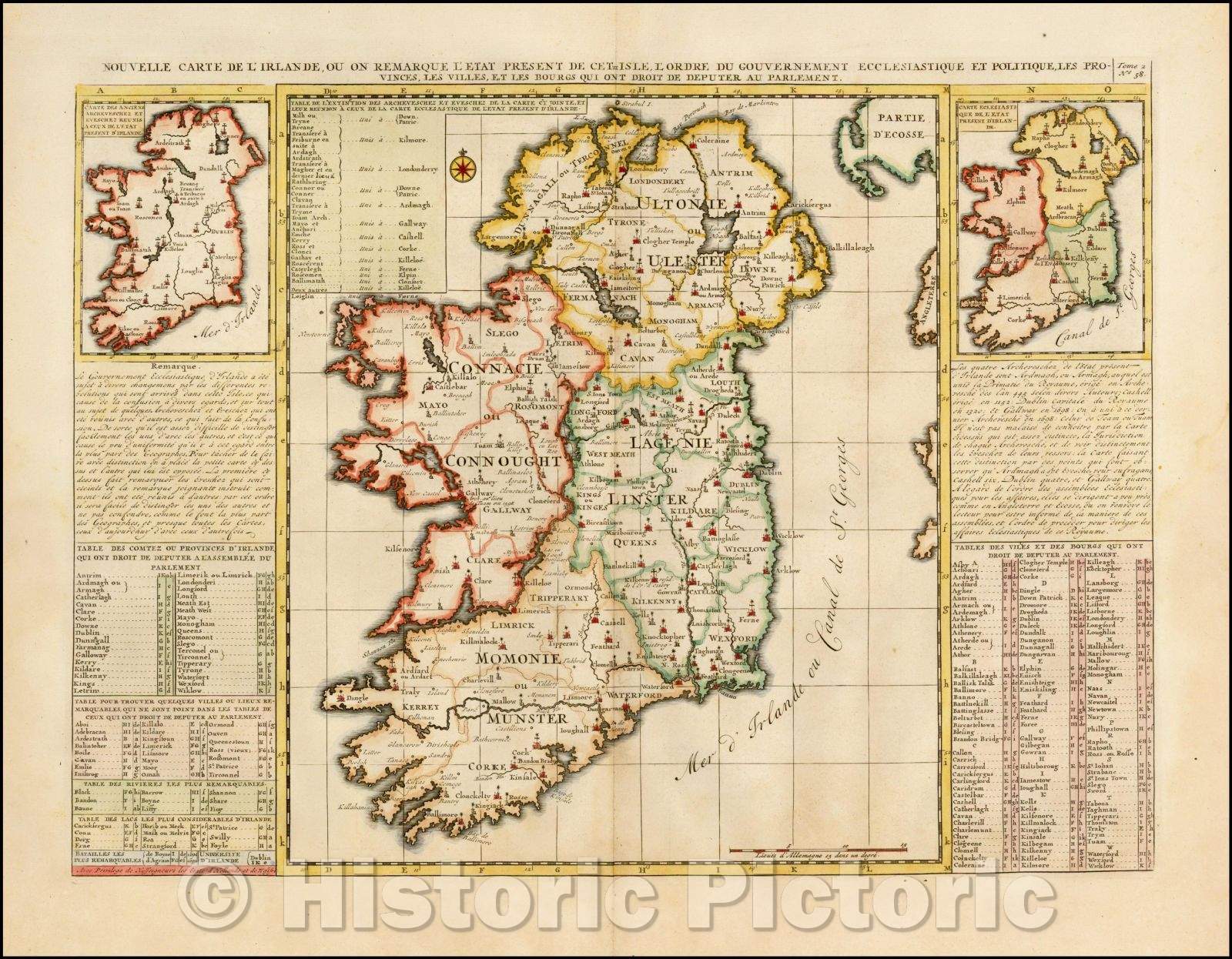 Historic Map - Nouvelle Carte De L'Irlande, ou on Remarque l'Etat Present De Cette Isle :: New Of Ireland, where we note the Present State Of The Isle, 1719 - Vintage Wall Art