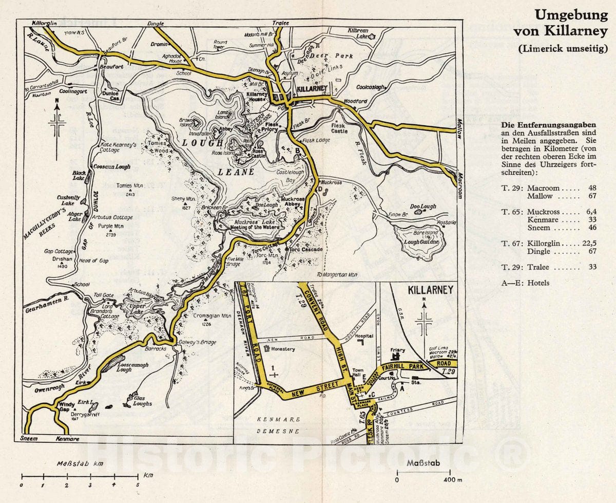 Historic Map : Umgebung von Killarney (Ireland), Umgebung von Killarney, 1940 Military Atlas , Vintage Wall Art