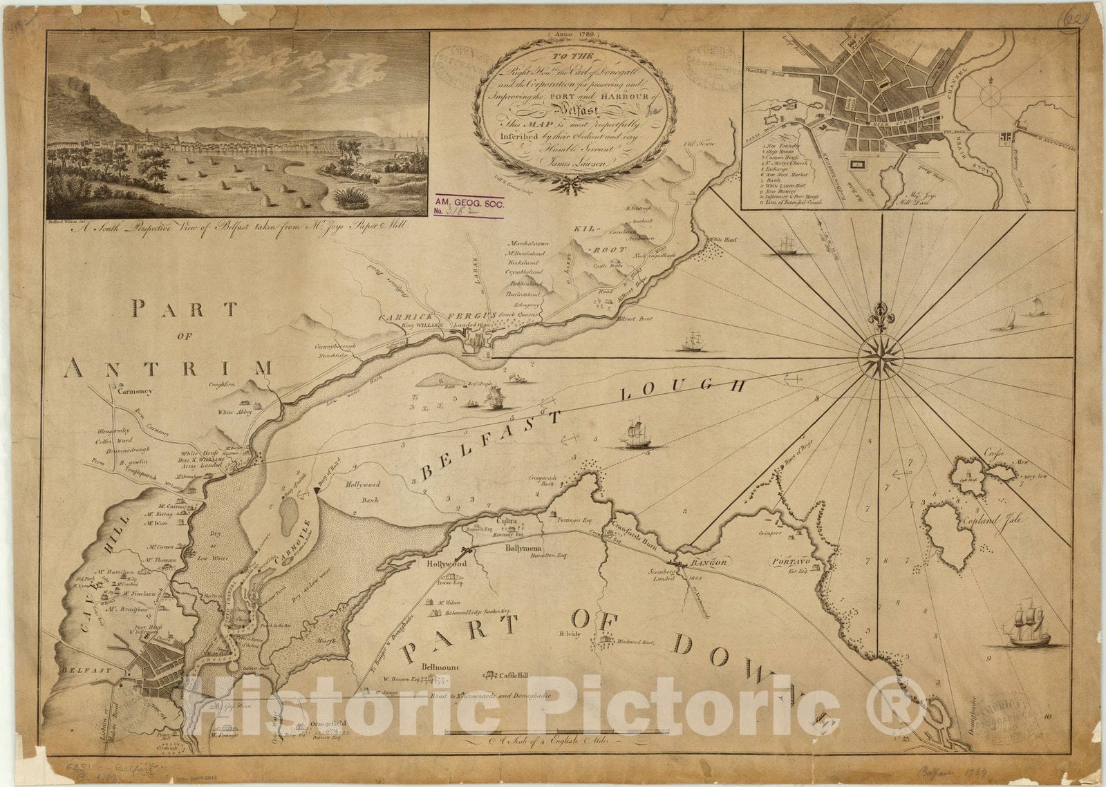 Map : Belfast, Ireland 1789, To the right honble. the Earl of Donegall and the corporation for preserving and improving the port and harbour of Belfast