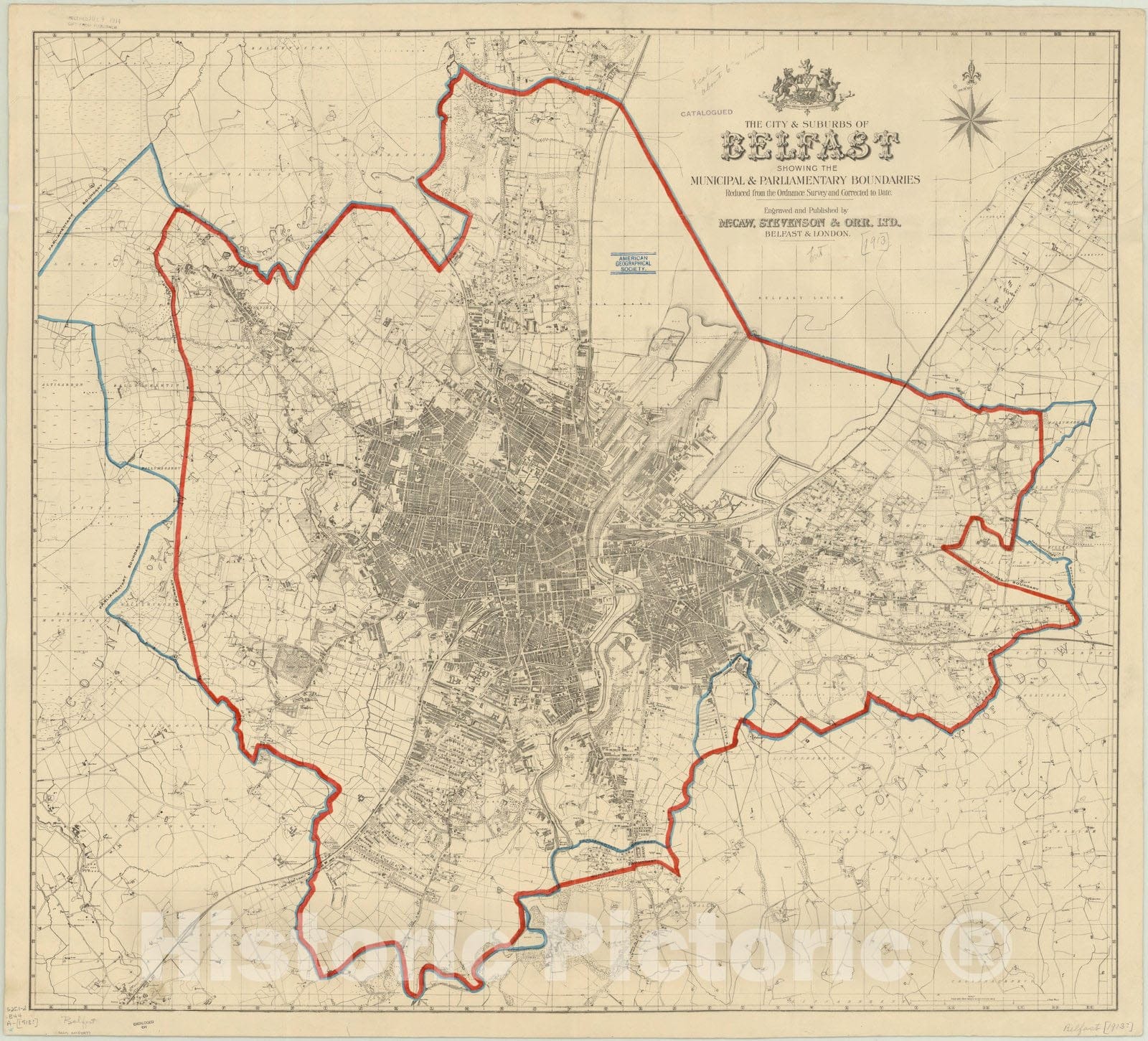 The City & suburbs of Belfast showing the municipal & parliamentary boundaries : reduced from the Ordnance Survey and corrected to date / engraved and published by McCaw, Stevenson & Orr, Ltd.