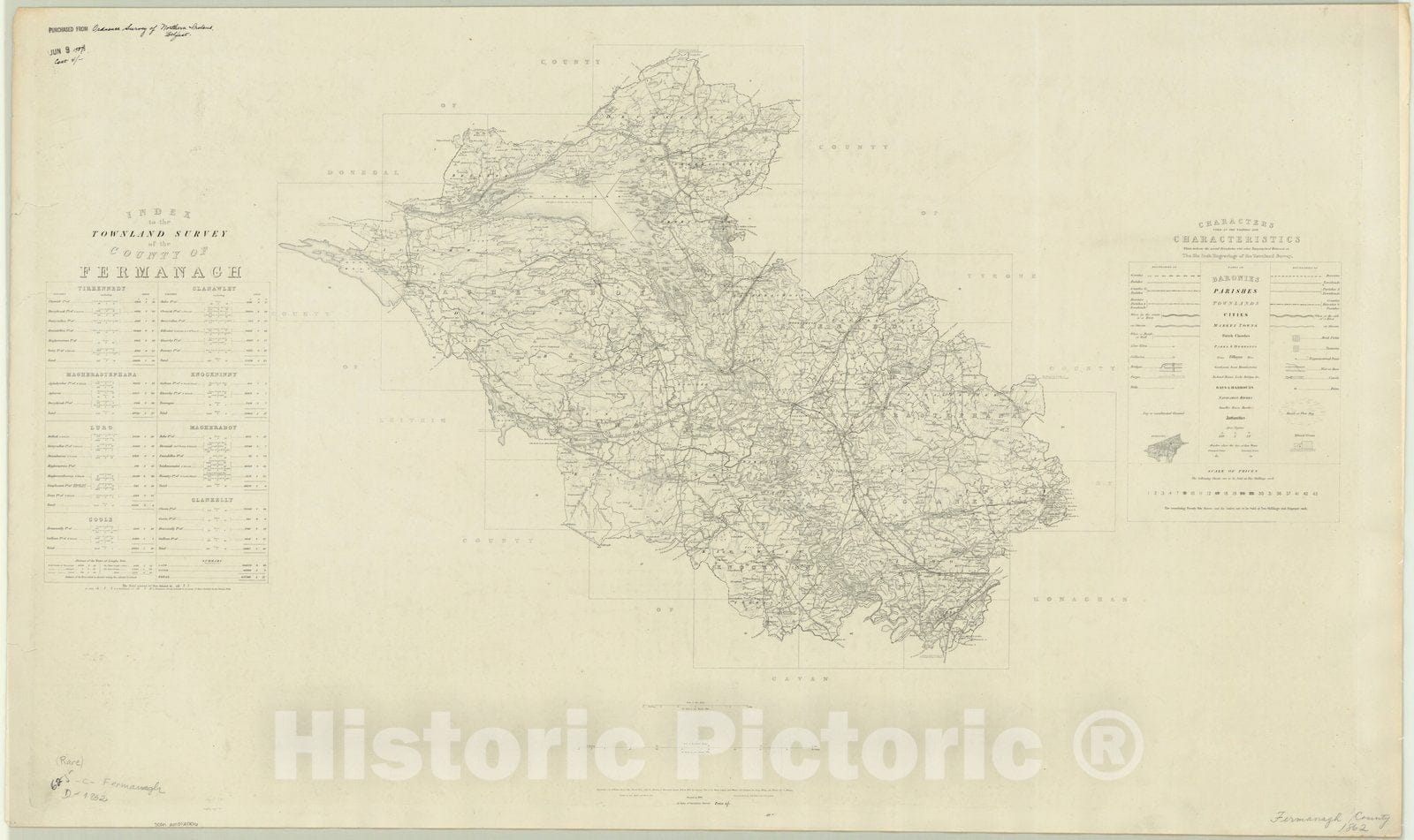 Map : Fermanagh, Northern Ireland 1862, Index to the Townland Survey of the County of Fermanagh , Antique Vintage Reproduction