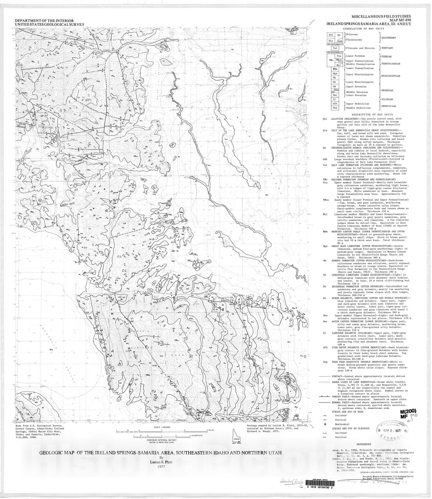 Map : Geologic map of the Ireland Springs-Samaria area, southeastern Idaho and northern Utah, 1977 Cartography Wall Art :