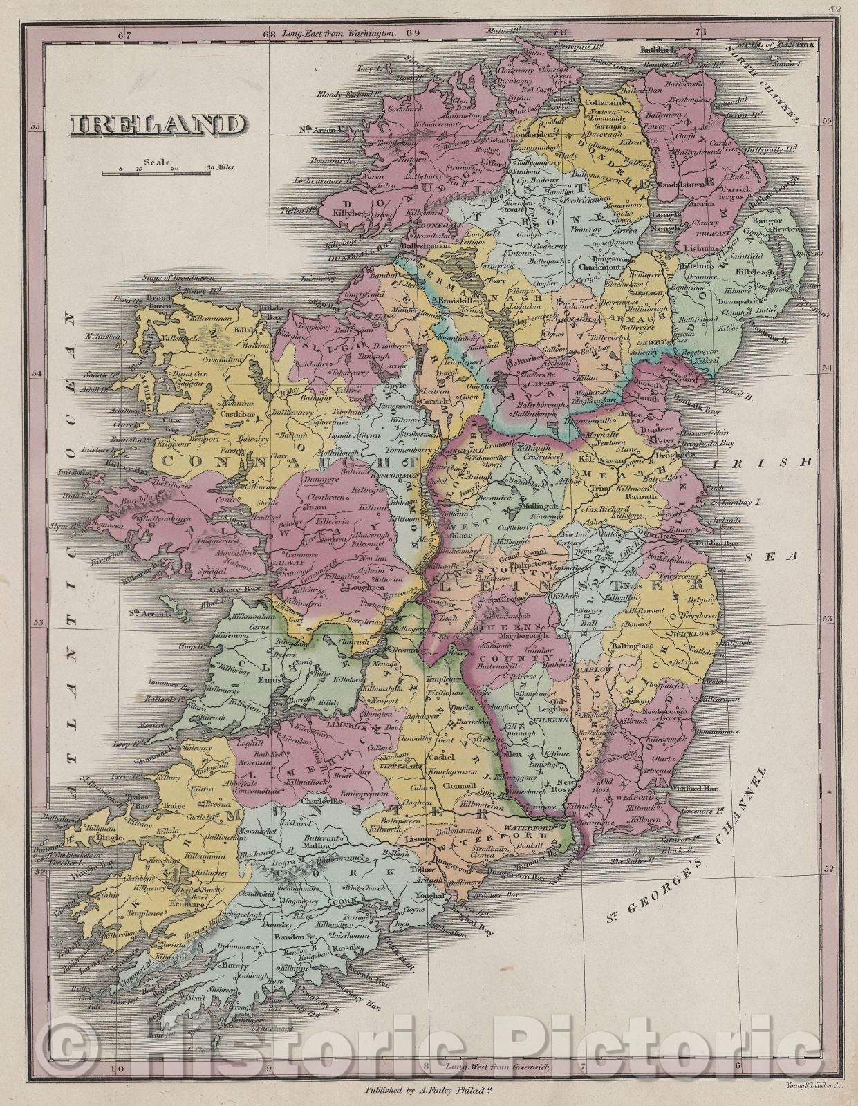 Historic Map : Ireland, 1832 , Vintage Wall Art