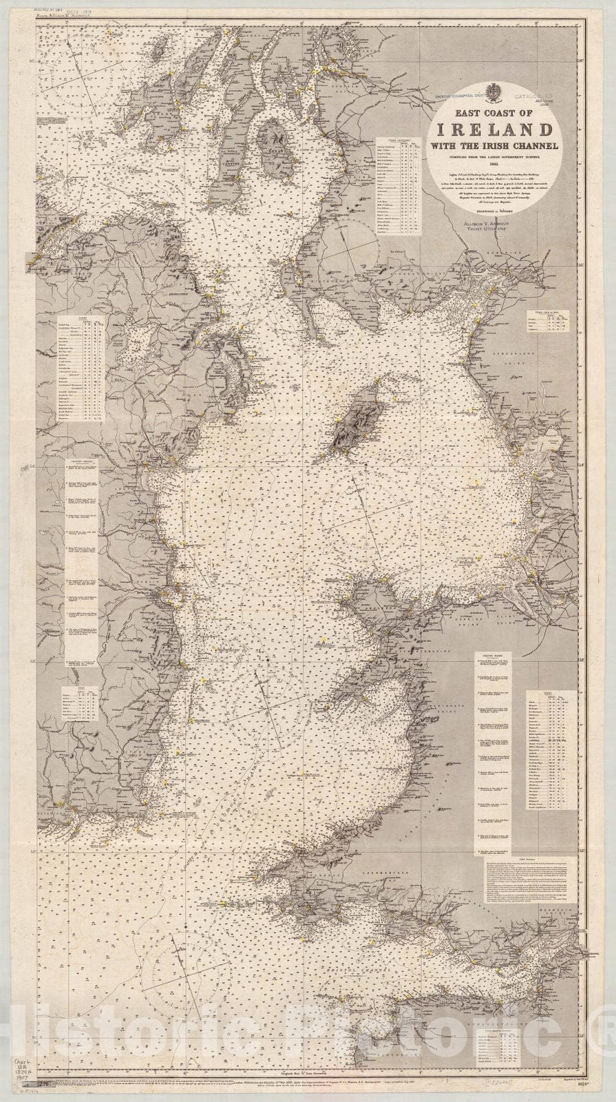Map : Irish Channel 1909, East coast of Ireland, with the Irish Channel , Antique Vintage Reproduction