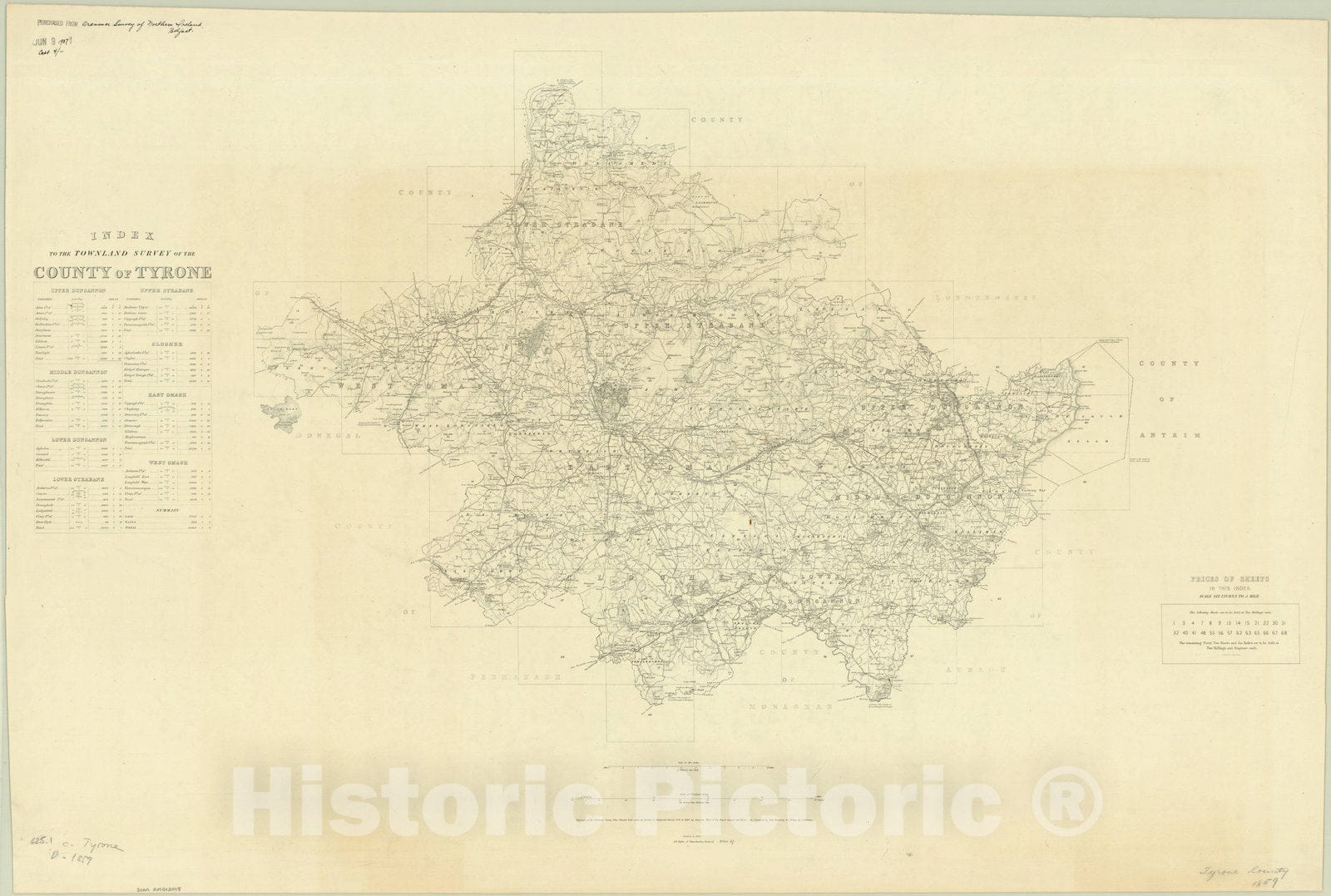 Map : Tyrone County, Northern Ireland 1859, Index to the Townland Survey of the County of Tyrone , Antique Vintage Reproduction