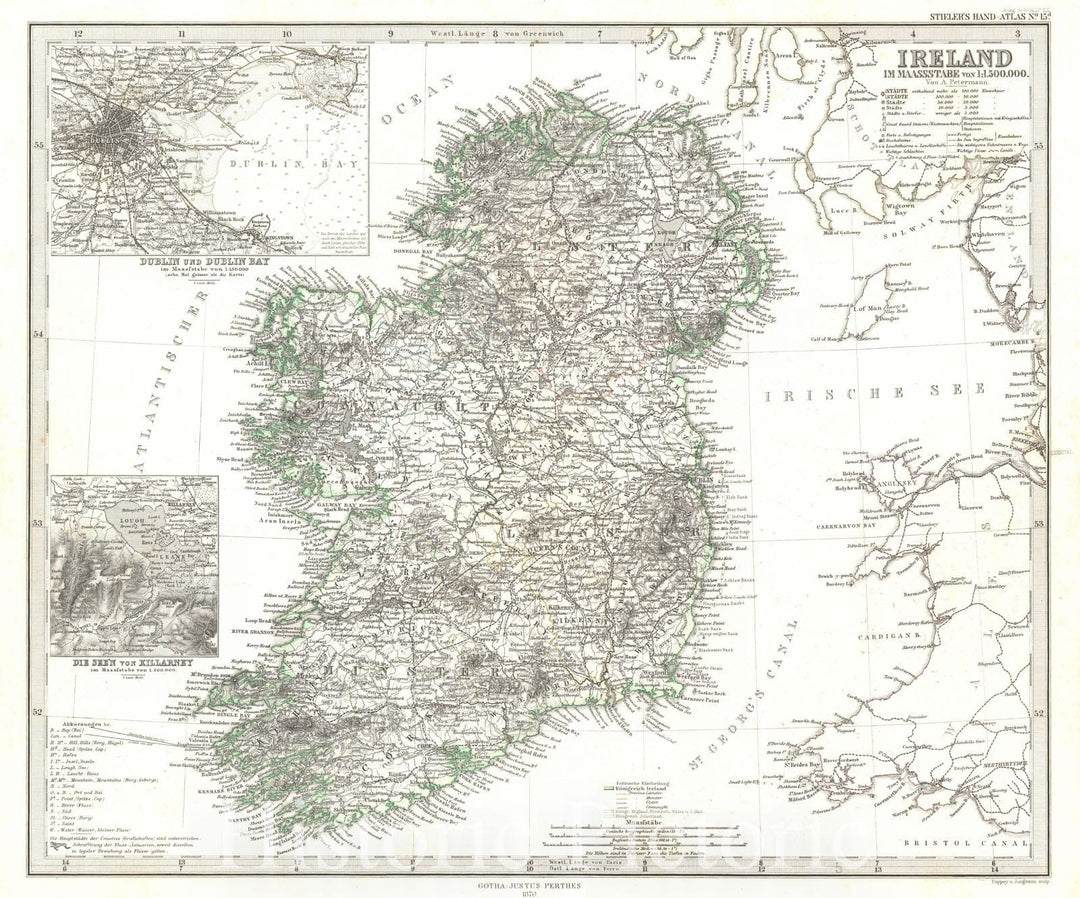 Historic Map : 1870 Ireland : Vintage Wall Art