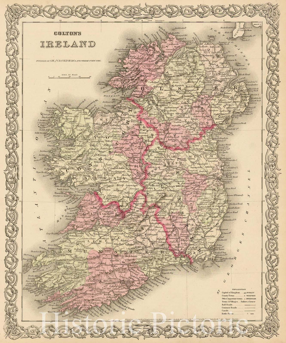 Historic Map - Colton's Ireland, 1855, Joseph Hutchins Colton - Vintage Wall Art