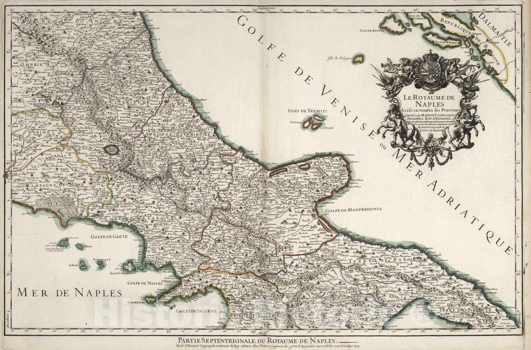 Historic Map : Naples (Italy) 1703 Le Royaume de Naples (northern sheet). , Vintage Wall Art