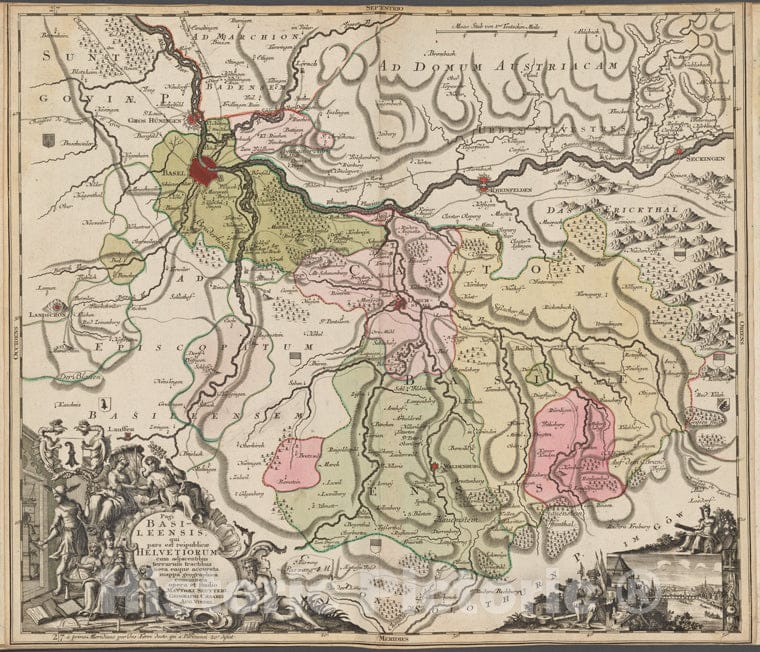 • .Historic 1731 Map - Pagi Basi-Leensis, Qui Pars Est Reipublicae Helvetiorum - Italy - Switzerlandof Switzerland And Italy - Vintage Wall Art