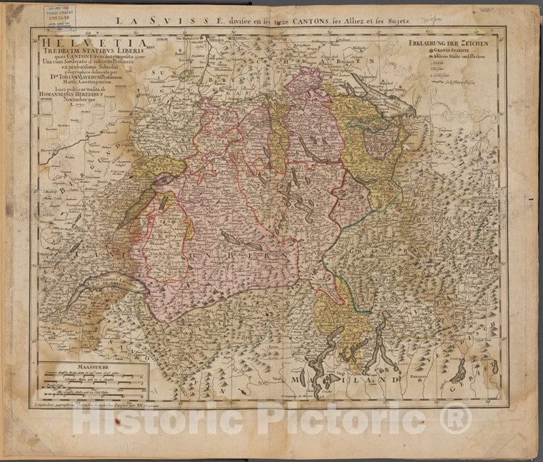 Historic 1751 Map - La Suisse Divisee En Ses Treze Cantons, Ses Alliez & Ses Sujets - Italy - Switzerlandof Switzerland And Italy - Vintage Wall Art