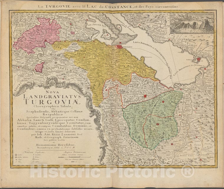 Historic 1766 Map - Nova Landgraviatus Turgovia Chorographica Tabula. - Italy - Switzerlandof Switzerland And Italy - Vintage Wall Art