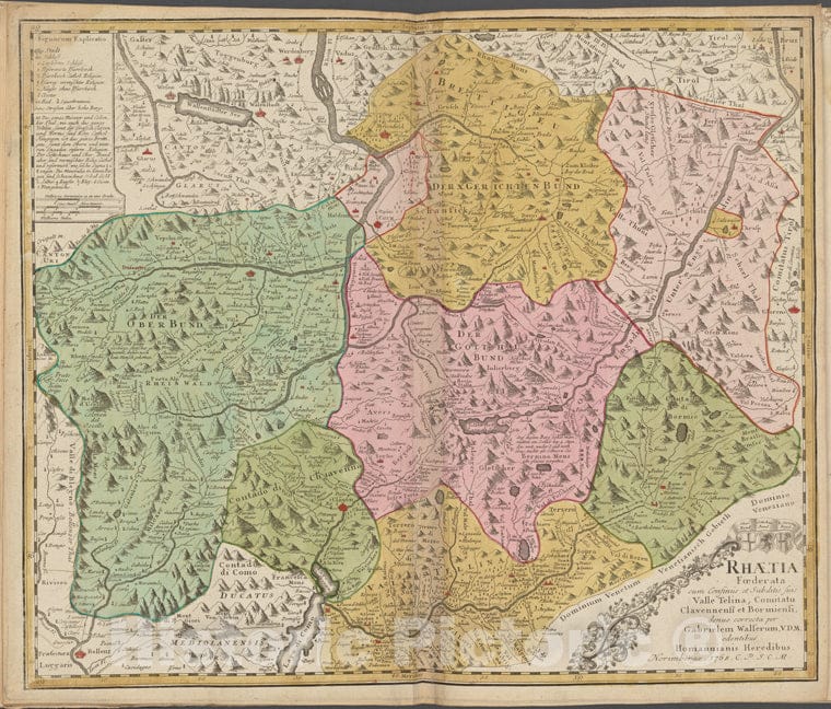 Historic 1768 Map - Rhatia Foederata - Italy - Switzerlandof Switzerland And Italy - Vintage Wall Art
