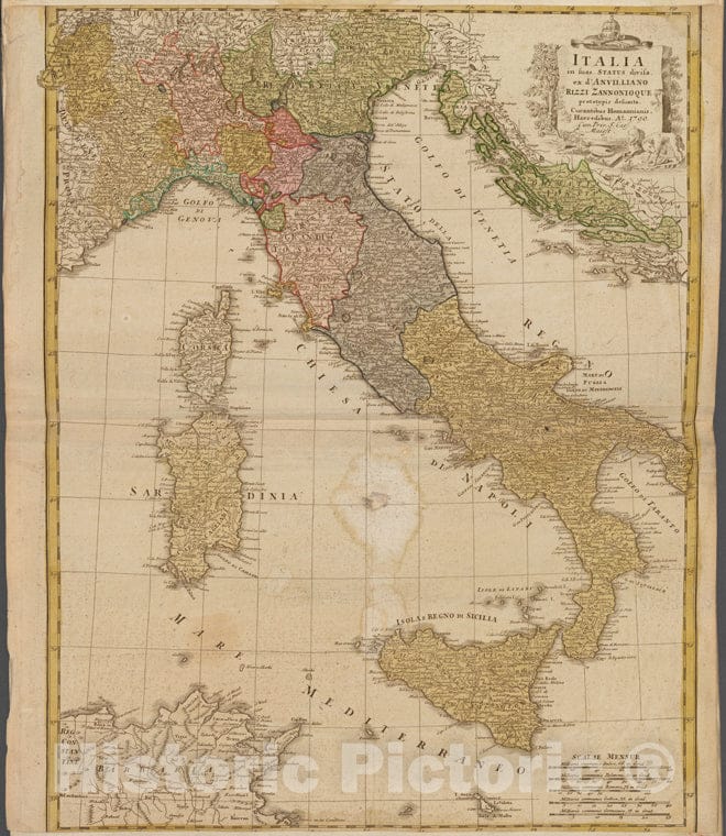 Historic 1790 Map - Italia In Sous Status Divisa - Italy - Switzerlandof Switzerland And Italy - Vintage Wall Art