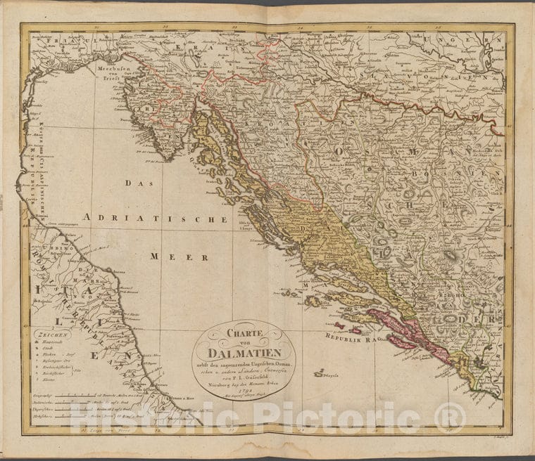 Historic 1798 Map - Charte Von Dalmatien - Italy - Switzerlandof Switzerland And Italy