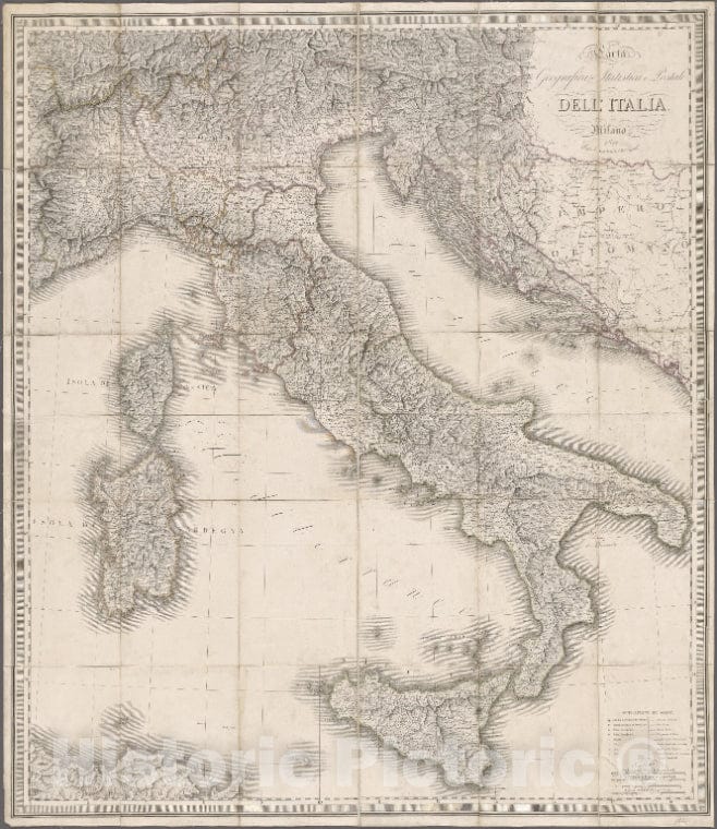 • .Historic 1821 Map - Carta Geografica Statistica E Postale Dell'Italia - Italy - Maps Of Europe - Vintage Wall Art