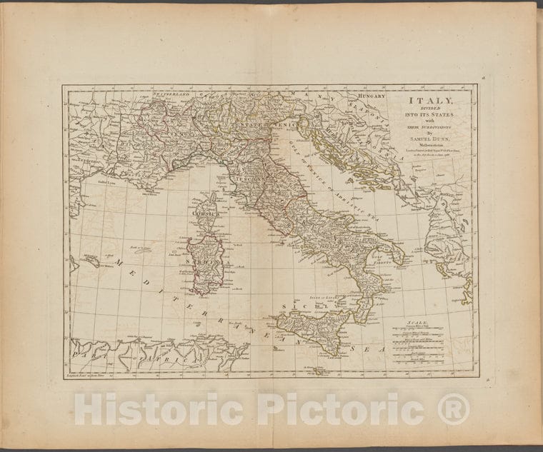 Historic Map - 1788 Italy, Divided Into Its States With Their Subdivisions
