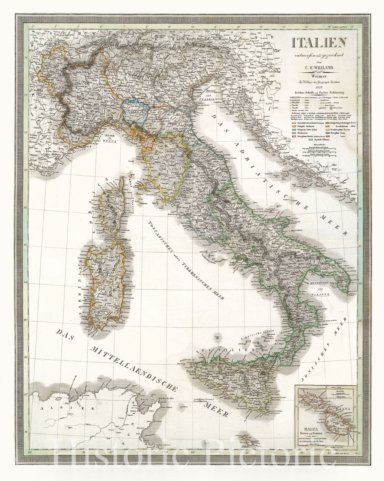 • .Historic Map : 1870 Austrian Empire, Italy, Turkey in Europe, Greece. - Vintage Wall Art