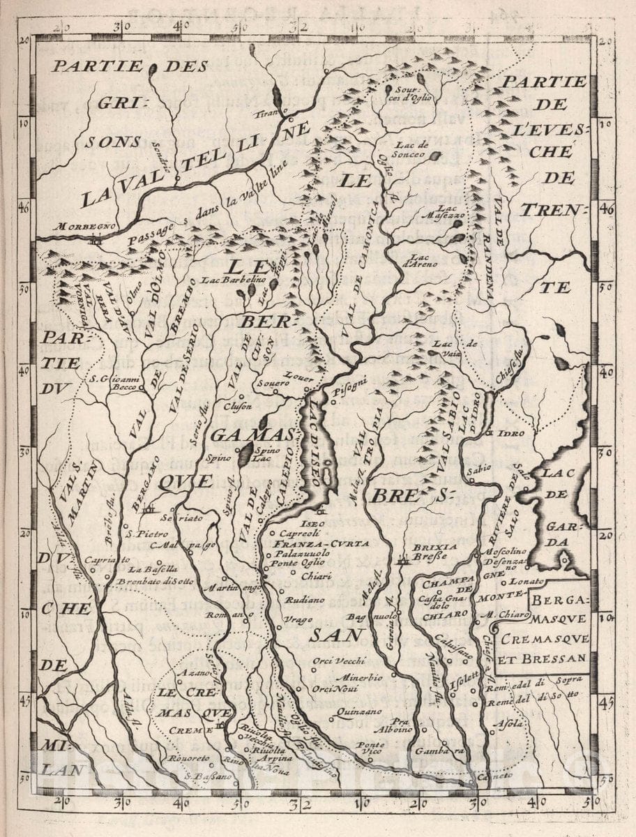 Historic Map : Bergame (Italy) Bergamasque Cremasque et Bressan, 1649 , Vintage Wall Art