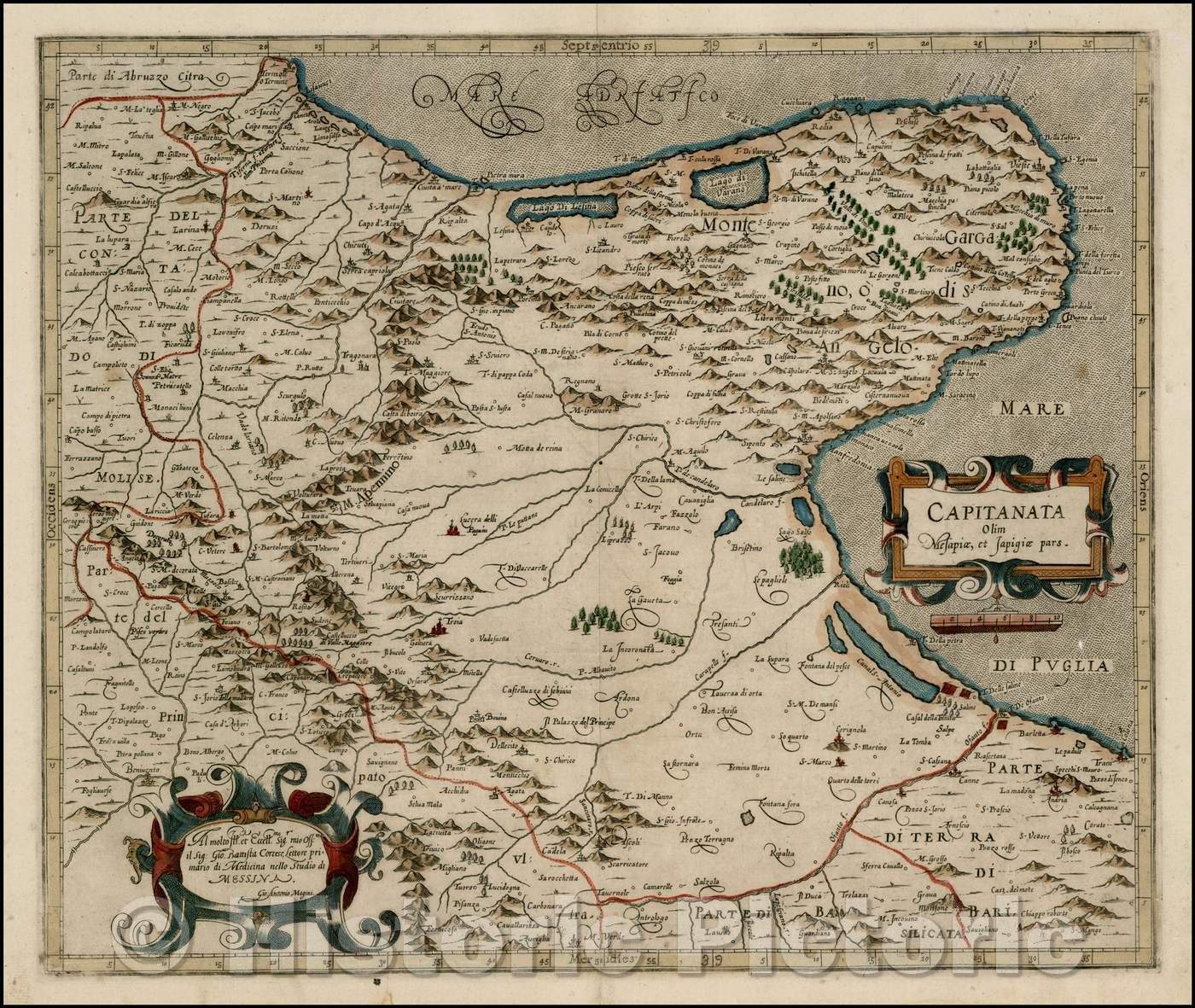 Historic Map - Capitanata Olim Mesapiae, et Japigiae pars/Magini's Regional Map of a portion of Southern Italy, 1620, Giovanni Antonio Magini - Vintage Wall Art