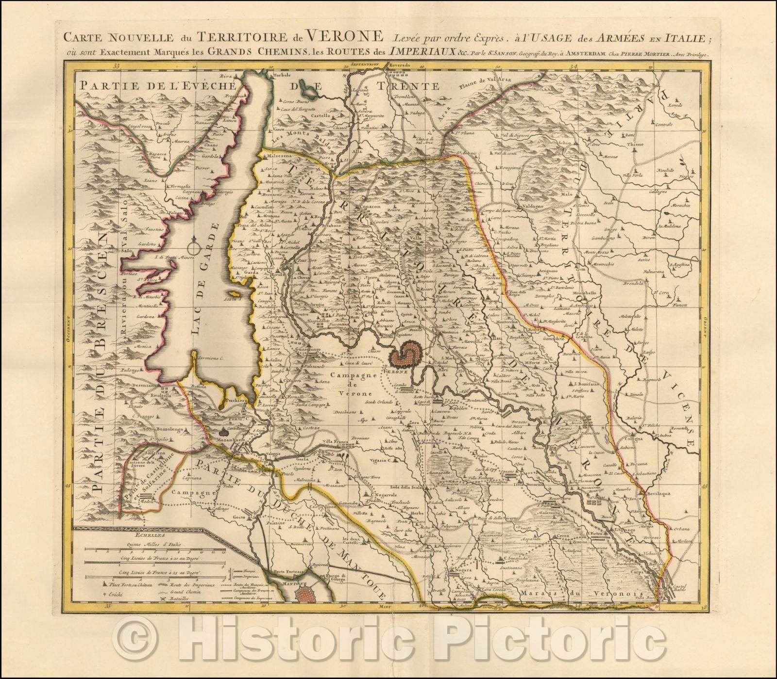 • Historic Map - Carte Nouvelle du Territoire de Verone levee pare ordre expres. a l'Usage des Armees :: Duchy of Modena, Reggio and Carpi in northern Italy, 1700 - Vintage Wall Art