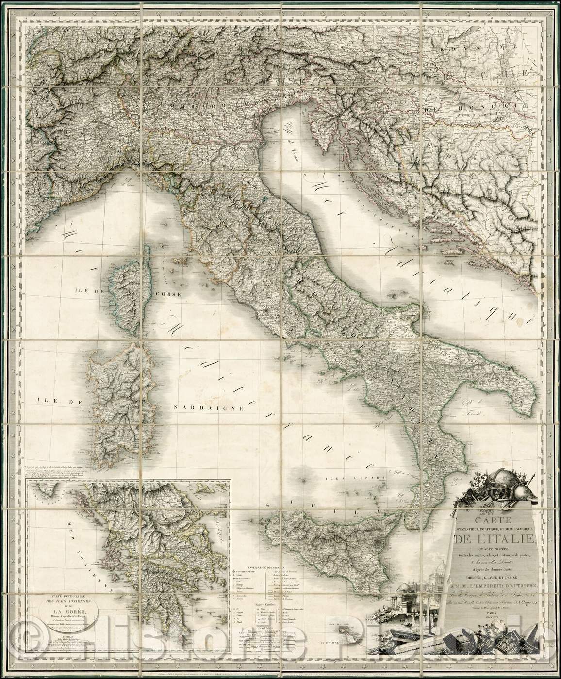 Historic Map - Carte Statistique, Politique, et Mineralogique De L'Italie ou sont tracees :: Politics and Mineralogical From Italy or are drawn every ro, 1816 - Vintage Wall Art