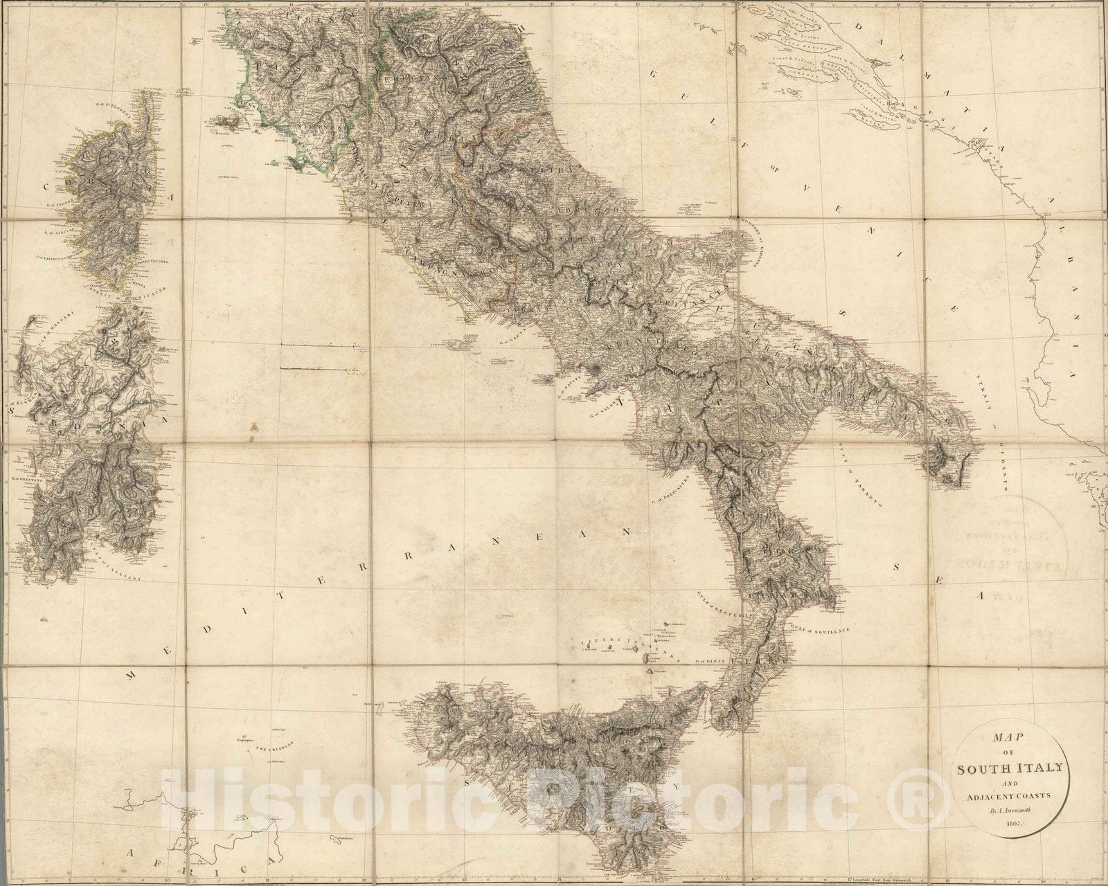Historic Map : Case Map - 1807 Composite Map: Map of South Italy and Adjacent Coasts. - Vintage Wall Art