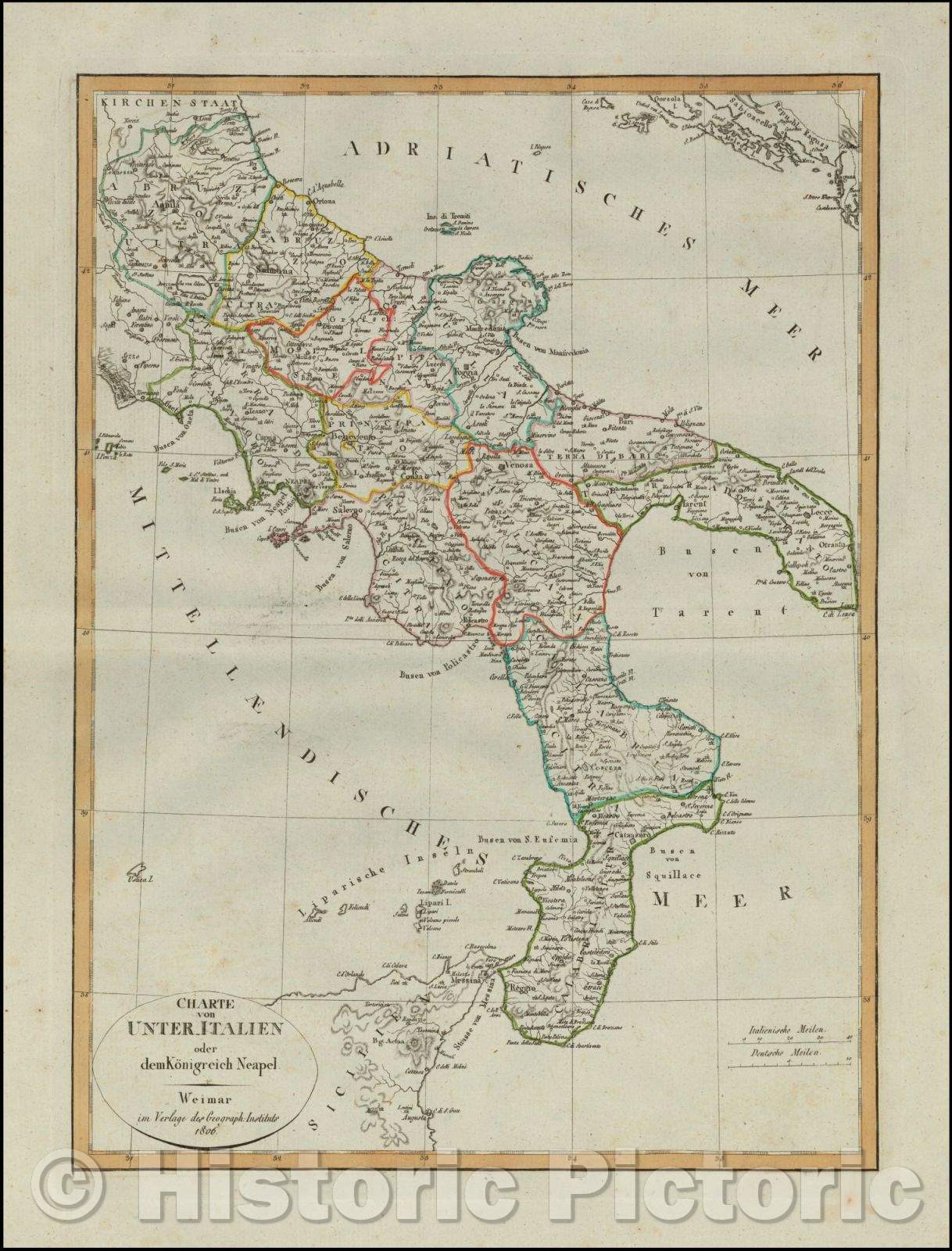 Historic Map - Charte von Unter Italiaen / 19th Century Map of Southern Italy, 1806, Weimar Geographische Institut - Vintage Wall Art
