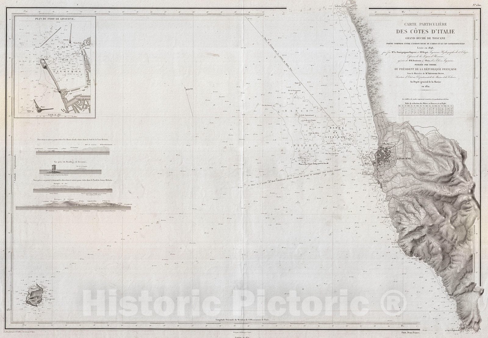 • Historic Map : Depot de la Marine Nautical Chart or Map of Livorno, Tuscany, Italy, 1852, Vintage Wall Art