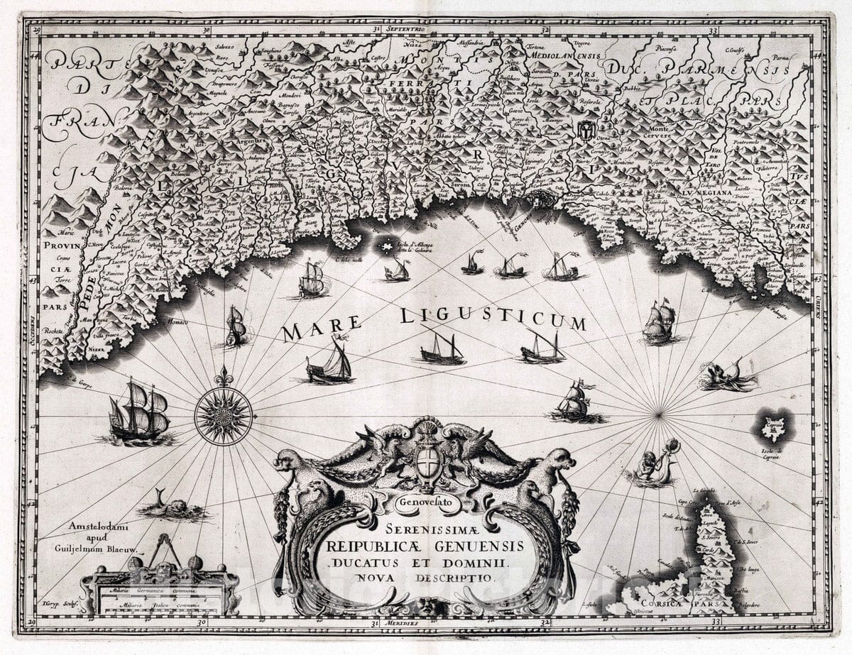 Historic Map : Genoa (Italy) 1630 Genovesato Serenissimae Reipublicae Genuensus. , Vintage Wall Art