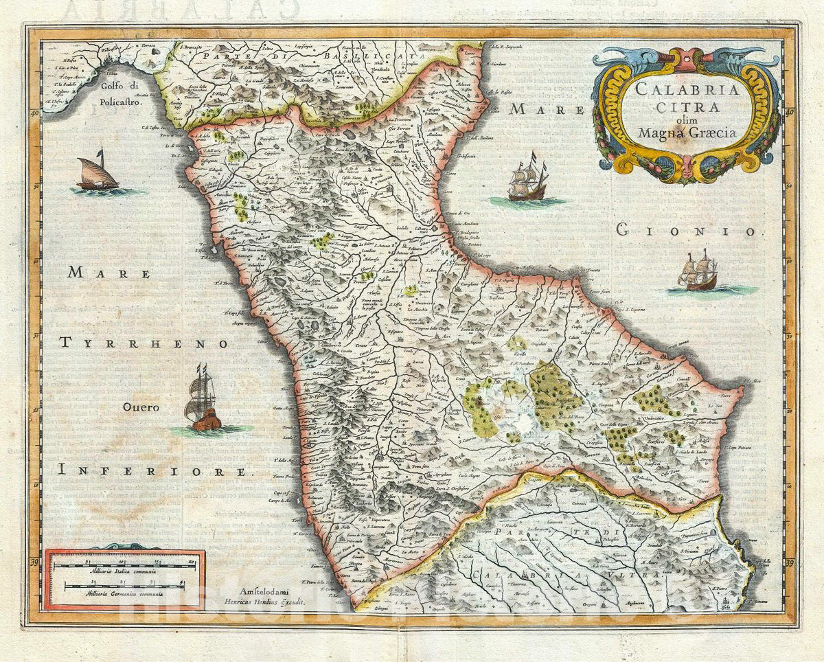 Historic Map : Hondius Map of Northern Calabria (Southern Italy), 1621, Vintage Wall Art