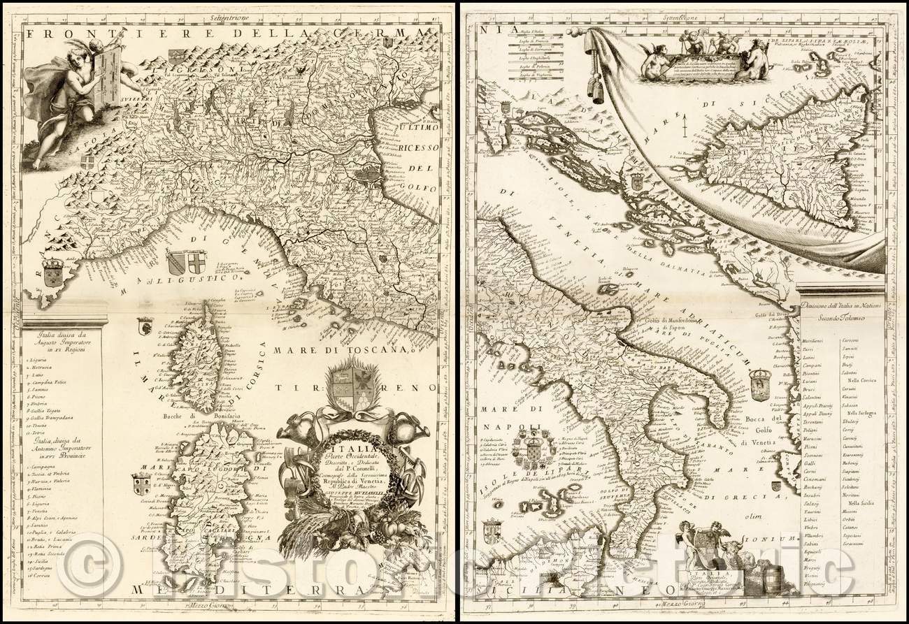 • .Historic Map - Italia Parte Occidentale/Italy Western Part. (And) Italy Eastern Part, 1690, Vincenzo Maria Coronelli - Vintage Wall Art