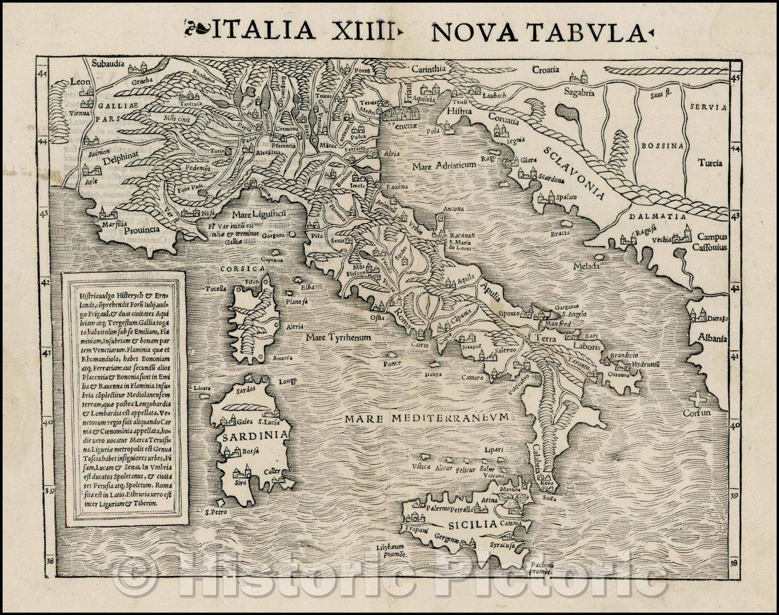 • .Historic Map - Italia XIIII Nova Tabula/Munster's modern Map of Italy, 1542, Sebastian M?nster - Vintage Wall Art